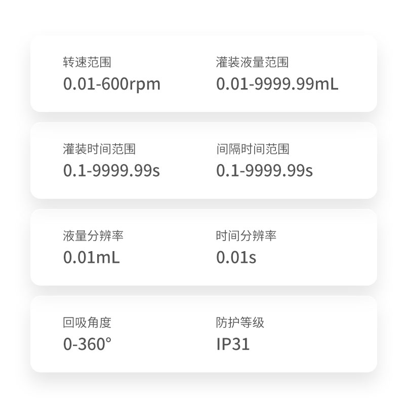 灌裝液量范圍:0.01-9999.99mL