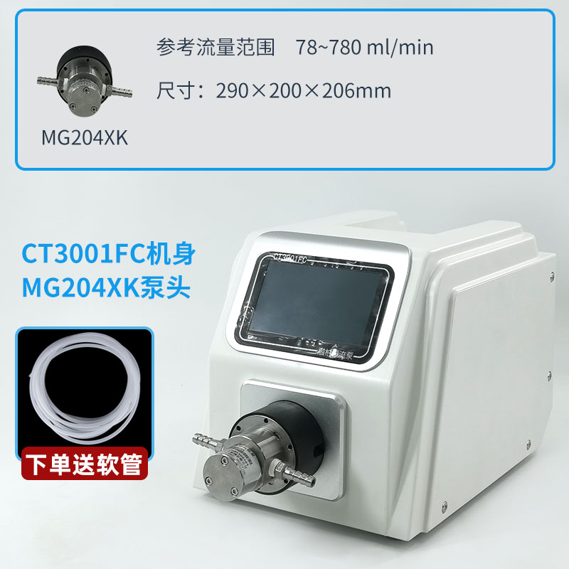 CT3001FC微型齒輪泵可提供78-2200(mL/min)的流量范圍。采用4.3寸真彩觸摸屏,可在流量或者分配模式下運行,同時還具有復制分配的功能,最多可以存儲60條分配參數,方便用戶調用。