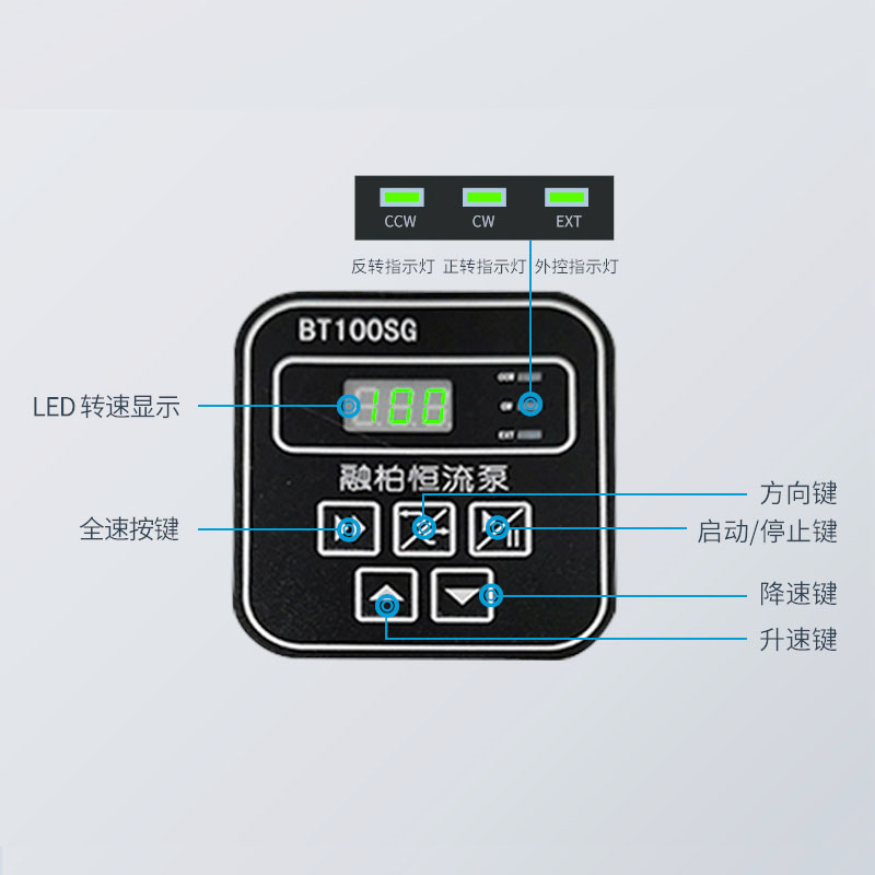 獨立按鍵調節轉速、方向、啟/停,操作簡單便捷;還設有全速鍵,可實現快速填充或排空